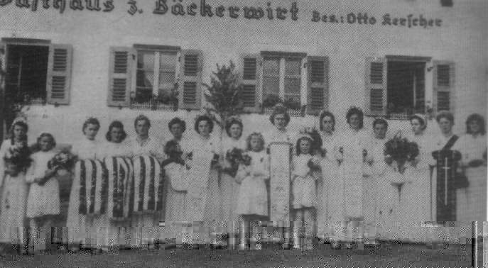 v.l.: Maria Bergmeier, Regina Pielmeier, Frieda Wacker, Zenta Zistler, Anneliese Anker, Reserl Pflügl, Gretl Kötterl, Fannerl Cerweny, Eugenie Umkehr, Pauline Gierl, Lotte Sachs, Reserl Poiger, Erna Kienberger, Maria Anderl, Erna Fisch, Anastasia Kwade, Maria Schlosser.